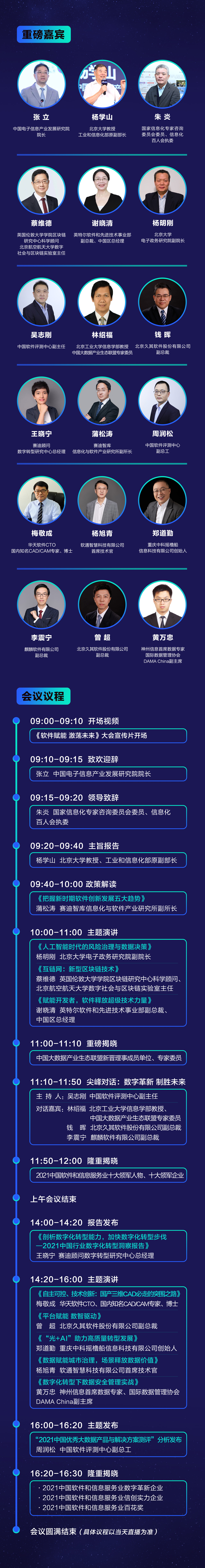 大会以“软件赋能 激荡数字未来”为主题,力邀政府部门主管领导、行业知名专家、学者、软件和信息服务业优秀企业、行业用户CIO、知名高校及科研机构、专业投资机构以及媒体同仁共襄盛举。立足“十四五”开局之年,勇担制造强国和网络强国建设重任,大家汇聚一堂,聚焦ICT热点话题,前瞻数字时代变革之势,共谋中国软件和信息服务产业的新发展、新征途!