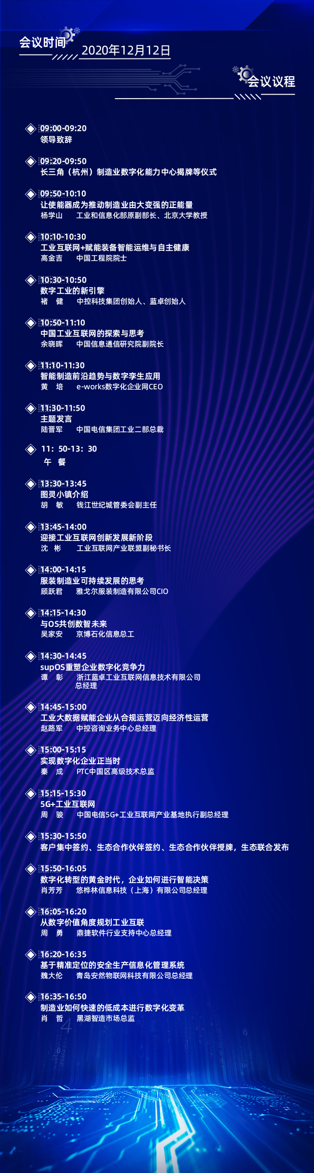 为深入贯彻落实浙江数字经济强省战略以及萧山区委区政府关于“新制造中心”行动战略,以省经信厅制造业数字化能力中心建设为契机,结合省委组织部工程师创新中心试点,萧山区提出建设长三角(杭州)制造业数字化能力中心。能力中心立足萧山、辐射浙江,是服务长三角的制造业数字化使能和赋能策源地,助力萧山建成全省产业数字化第一区、新制造中心。为高规格的展示和推广长三角(杭州)制造业数字化能力中心,从而不断扩大能力中心生态体系,结合中国工业大数据大会·钱塘峰会这一萧山品牌活动的影响力,定于2020年12月12日于萧山举办2020(第五届)中国工业大数据大会·钱塘峰会暨未来智造大会。